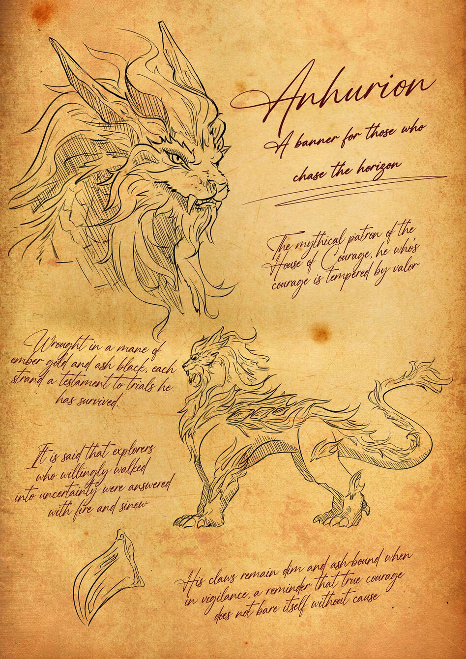 -Inspired by Anhur, an the ancient Egyptian deity of war, hunting, and slaughter, who's heavily associated with bravery, courage, and strength.Lion = courage. Fairly straightforward.Design-wise, I took a lot of inspiration from Teostra and Inagami from the Monster Hunter franchise (ngl I did refer to ALOT of their art for all the renfaire prints)